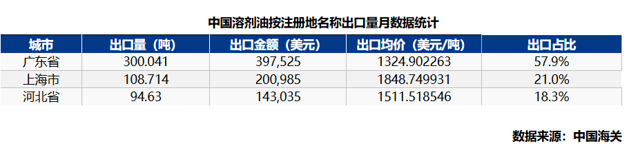 溶剂油出口逐年迟缓添加,商业体例变化受外部要素影响较小,次要是保税监管场合进出境货色和一般商业。排名前五位的省市有上海市,广东省、省,约占出口总量的96%,广东省是国内溶剂油出口次要省分,占国内出口总量的56%。